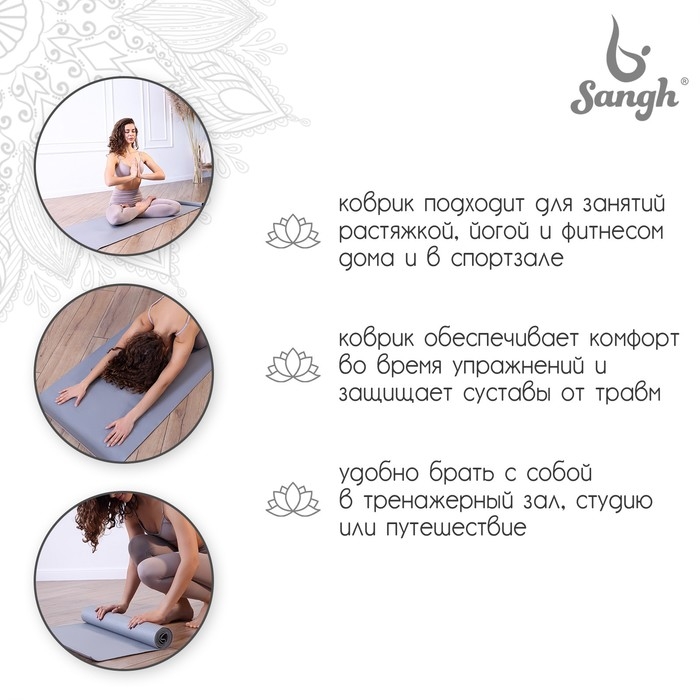 Коврик для йоги Sangh, 173х61х0,3 см, цвет серый