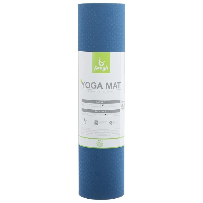 Коврик для йоги Sangh, 183×61×0,8 см, цвет синий