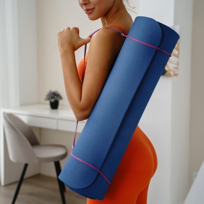 Коврик подходит для занятий йогой и фитнесом дома и в спортивных залах. Помогает в выполнении асан или других упражнений. Смягчает упор тела на твёрдую поверхность. Сохраняет форму после выполнения упражнений.