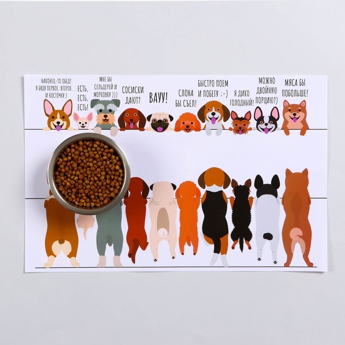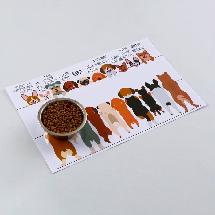 Коврик под миску "Пижон" 43 х 28 см "Собачки в ожидании"