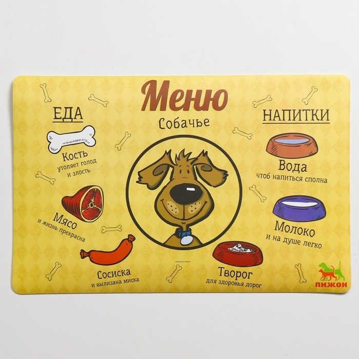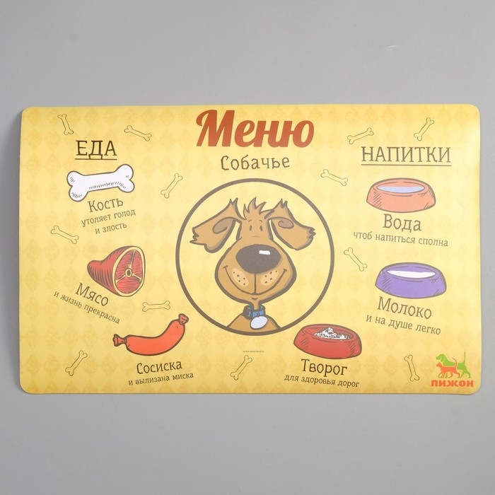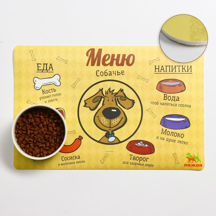 Коврик под миску "Пижон" с нескользящим основанием, 43 х 28 см, "Меню собачье"