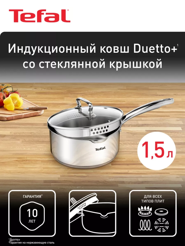 Металлический ковш Duetto+ от Tefal - это превосходные результаты приготовления и комфорт на кухне каждый день!