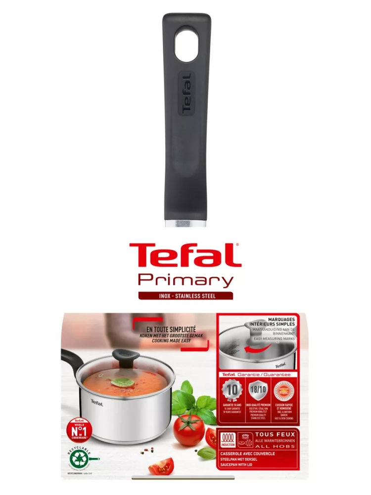 Ковш с крышкой Tefal Primary E3082274 16 см - надежный помощник для вашего повседневного кулинарного творчества.