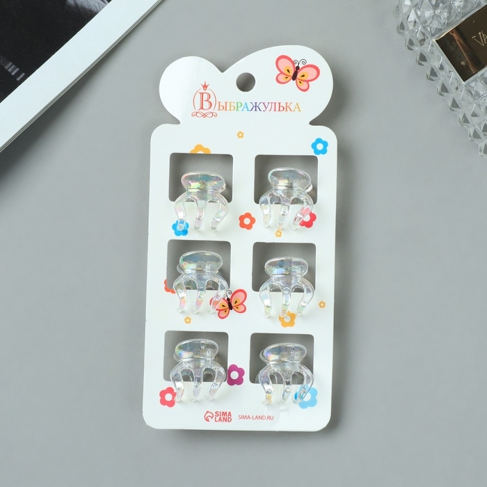 Краб для волос "Аванти" (набор 6 шт) зубчики, 2 см, прозрачный