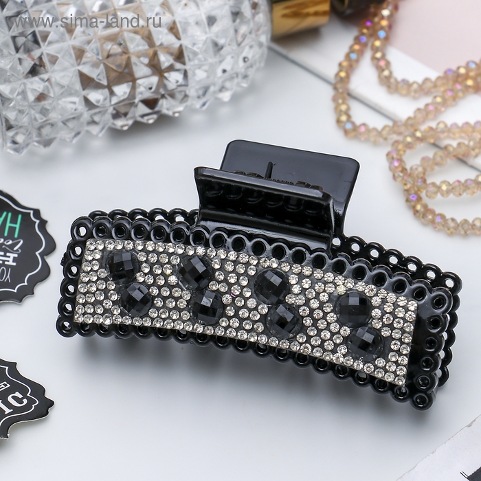 Краб для волос "Манифик" стразы двойные, 9 см, чёрный