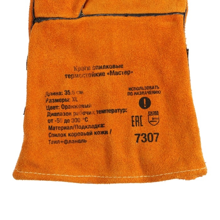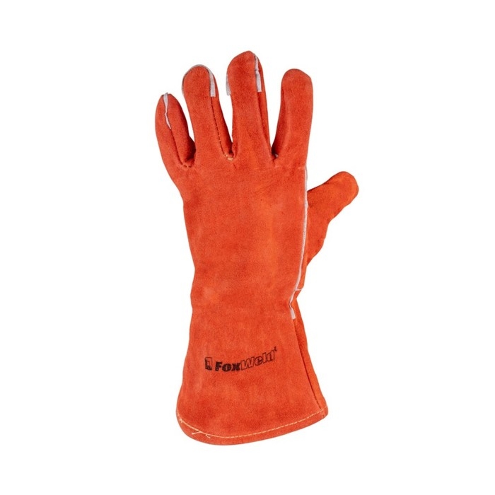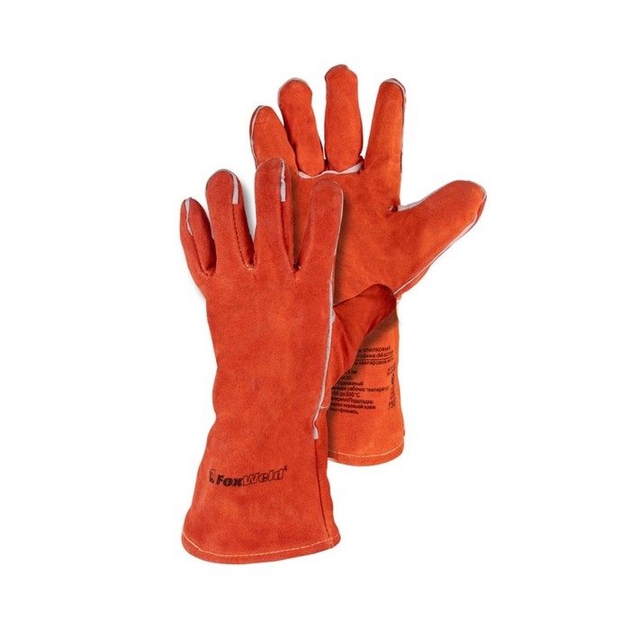 Краги спилковые FoxWeld Мастер с печатью, термостойкие, кевларовые нити, 36х13 см, 0.4 кг