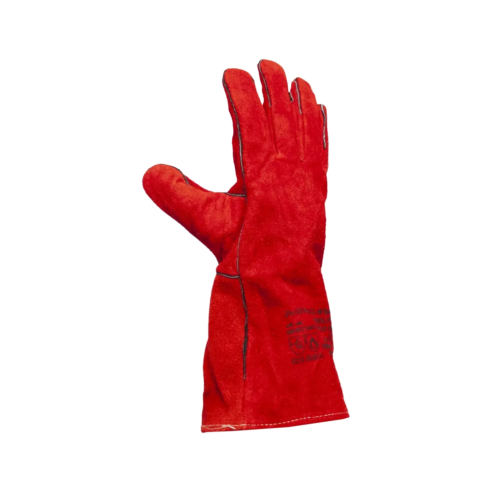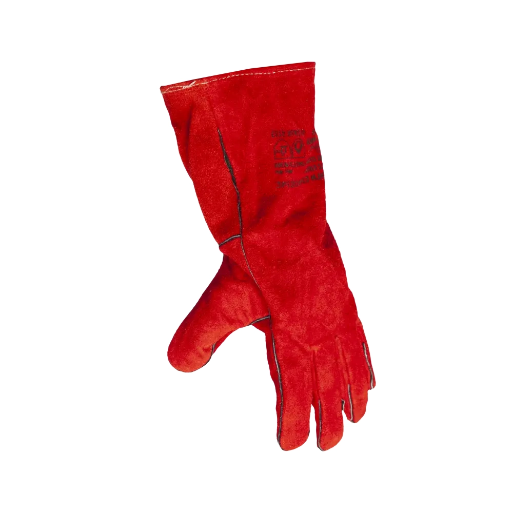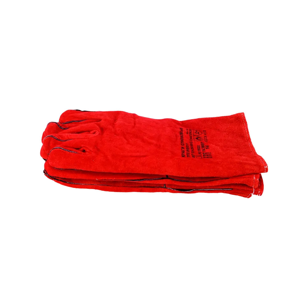 Удлиненные спилковые краги, в составе которых кожевенный спилок красного цвета, защитят от всевозможных механических повреждений, искр, брызг раскаленных материалов. Внутри краг - подкладка из 100%-го хлопка. Швы из лавсановой нити закрыты и усилены кожаными вставками. Краги удлинены, что обеспечивает дополнительную защиту запястья. Используются во время сварки, работы с грубыми поверхностями.
