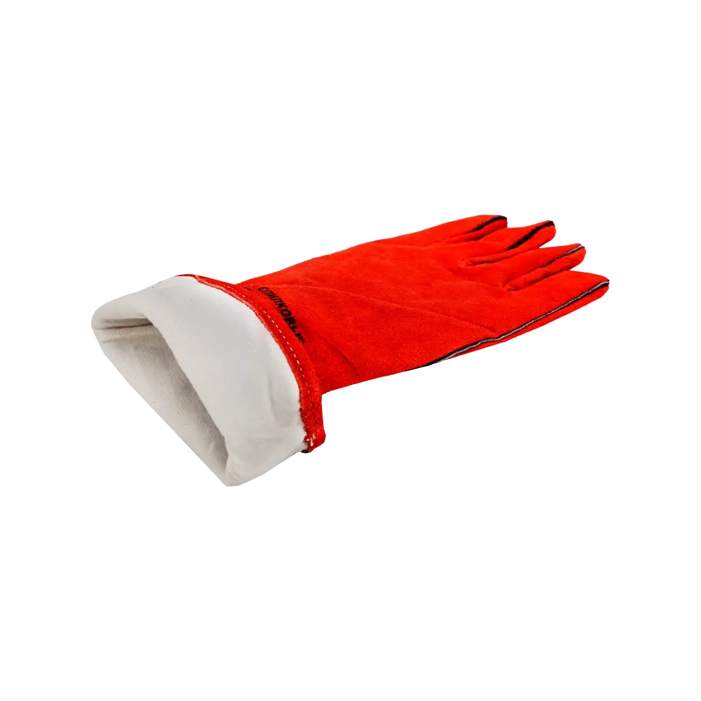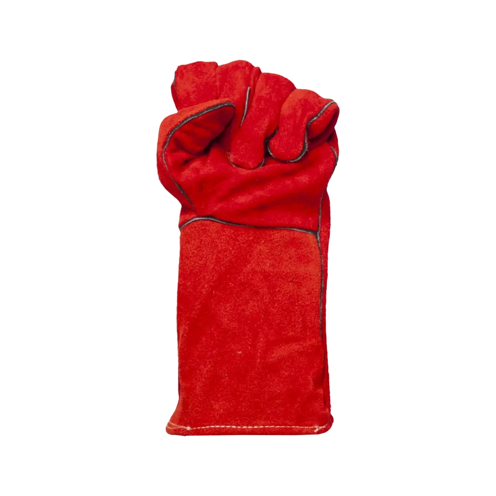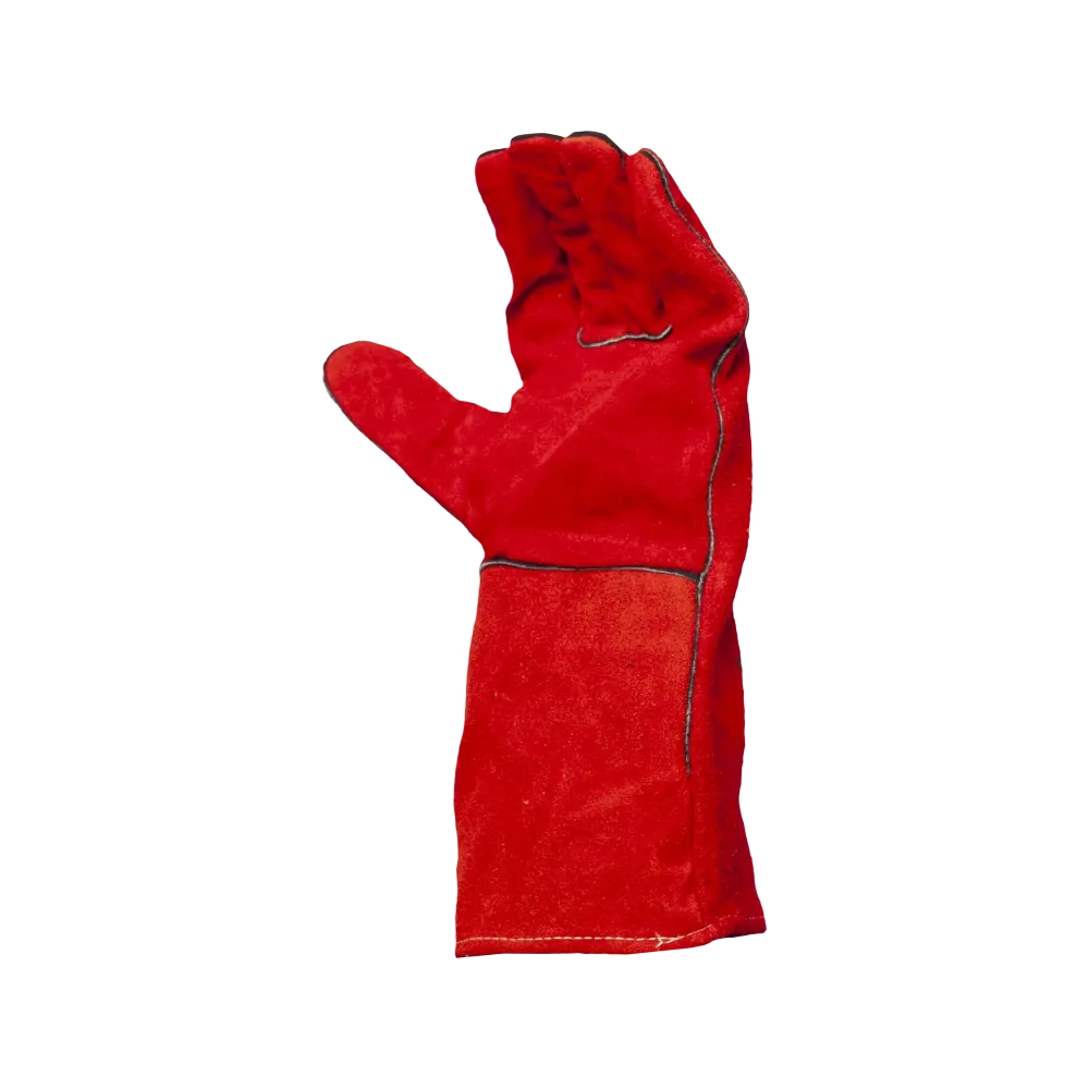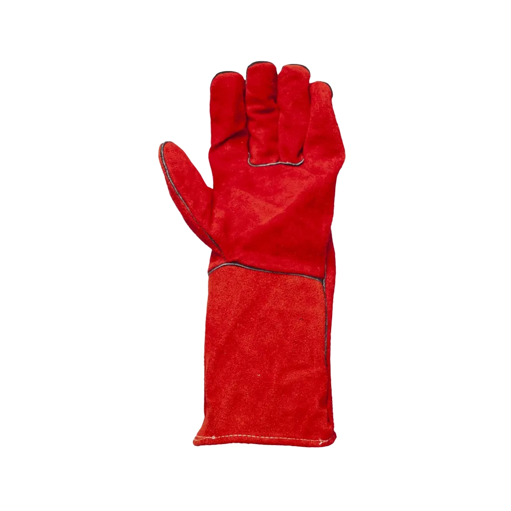 Удлиненные спилковые краги, в составе которых кожевенный спилок красного цвета, защитят от всевозможных механических повреждений, искр, брызг раскаленных материалов. Внутри краг - подкладка из 100%-го хлопка. Швы из лавсановой нити закрыты и усилены кожаными вставками. Краги удлинены, что обеспечивает дополнительную защиту запястья. Используются во время сварки, работы с грубыми поверхностями.