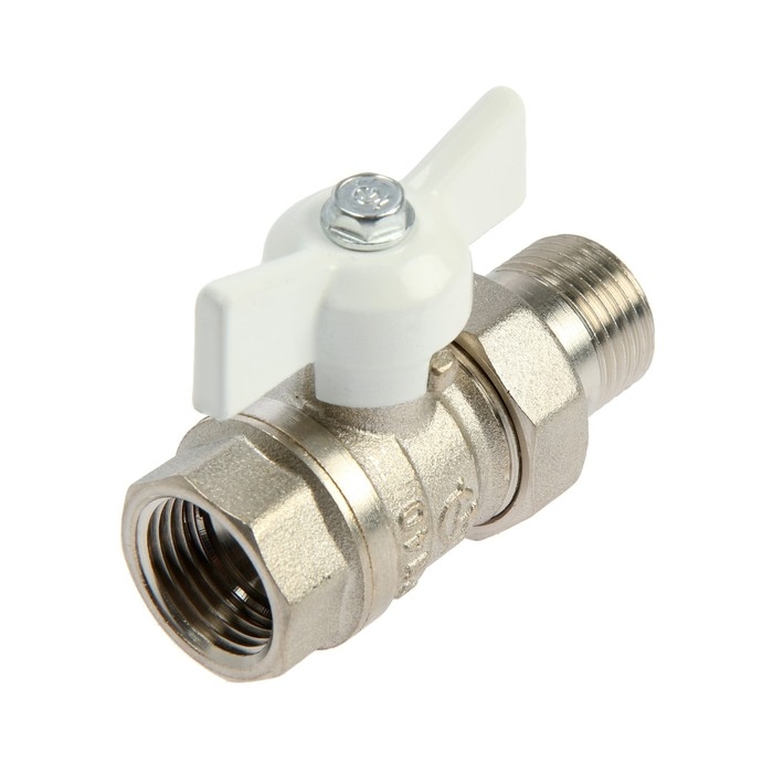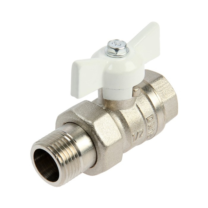 Кран шаровой "ГАЛЛОП" DN-15 232, с американкой 1/2", "бабочка" белая, никелированный
