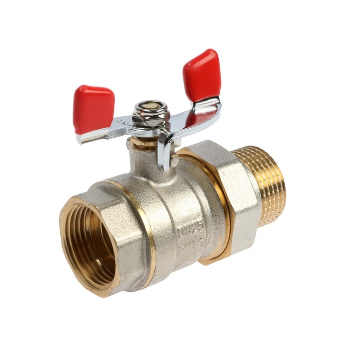 Кран шаровой STT, 1", с американкой, никелированная латунь