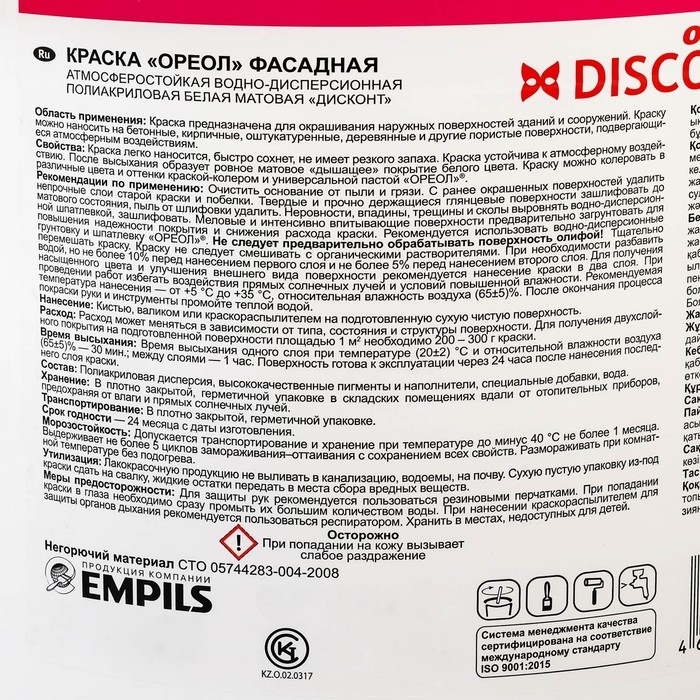 Краска акриловая фасадная ОРЕОЛ Дисконт 13 кг