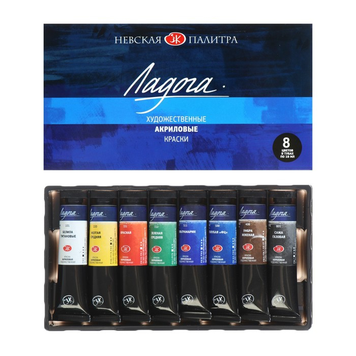 Краска акриловая в тубе, набор 8 цветов х 18 мл, ЗХК "Ладога", художественный, 2241178