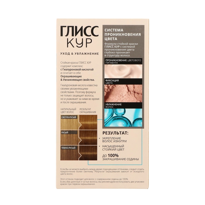Формула c системой Color Care Delivery глубоко проникает в структуру волоса. Cтойкая краска Gliss Kur c гиалуроновой кислотой, известной своими увлажняющими свойствами, не только защищает волосы, но и ухаживает за ними во время и после окрашивания.