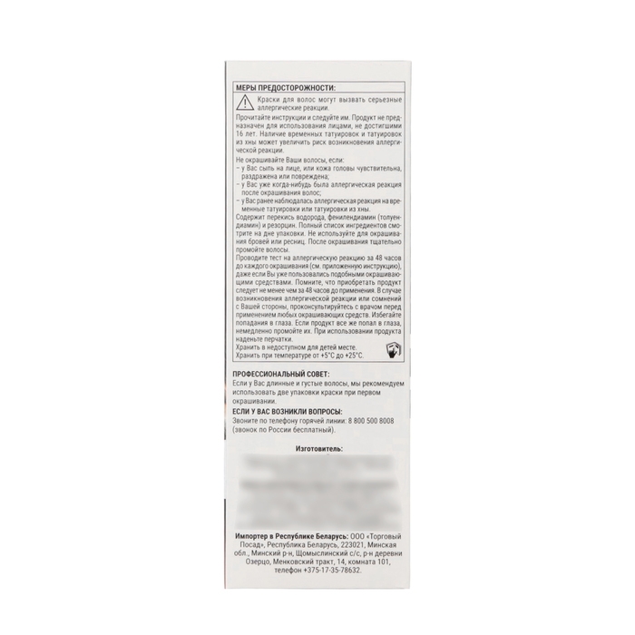 - Проявляющая эмульсия: Aqua (Water, Eau) · Hydrogen Peroxide · Cetearyl Alcohol · PEG-40 Castor Oil · Disodium Pyrophosphate · Sodium Cetearyl Sulfate ·Disodium EDTA · Sodium Benzoate · Phosphoric Acid