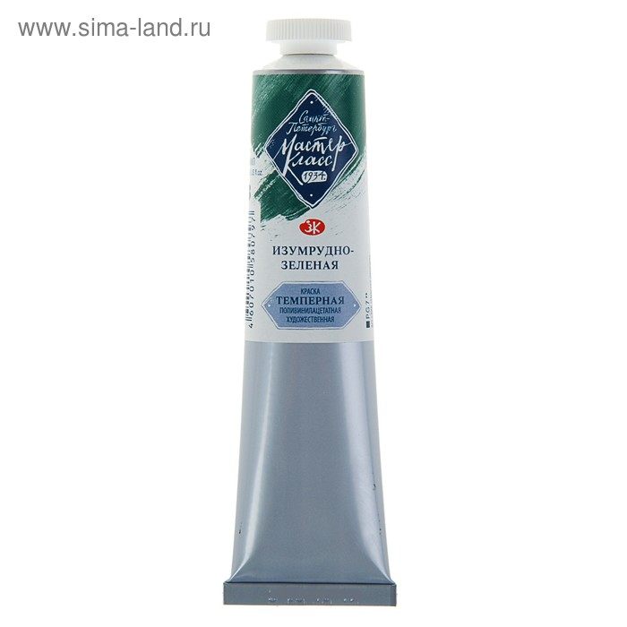Краска художественная темперная в тубе 46 мл, ЗХК "Мастер-класс", изумрудно-зелёная, 1604713