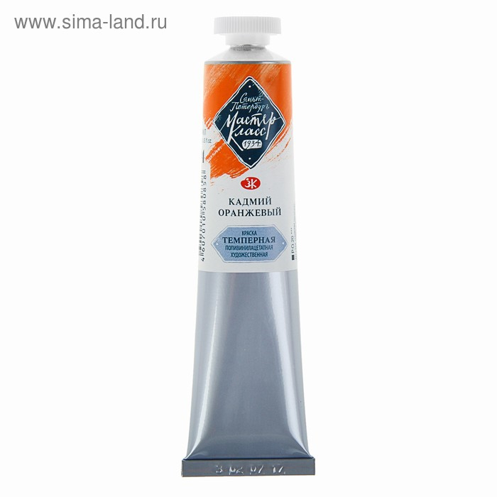 Краска художественная темперная в тубе 46 мл, ЗХК "Мастер-класс", кадмий оранжевый, 1604304