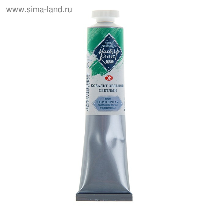 Краска художественная темперная в тубе 46 мл, ЗХК "Мастер-класс", кобальт зелёный светлый, 1604706