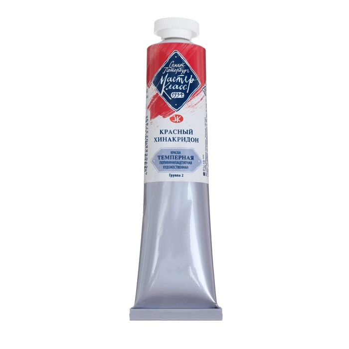 Краска художественная темперная в тубе 46 мл, ЗХК "Мастер-класс", Красный хинакридон, 1604361