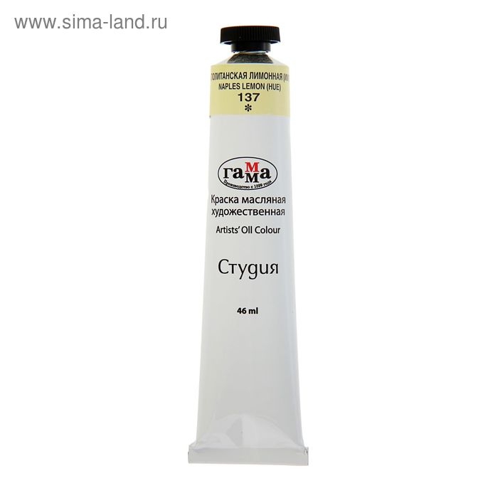 Краска масляная в тубе 46 мл, Гамма "Студия", №137 неаполитанская лимонная (имитация)