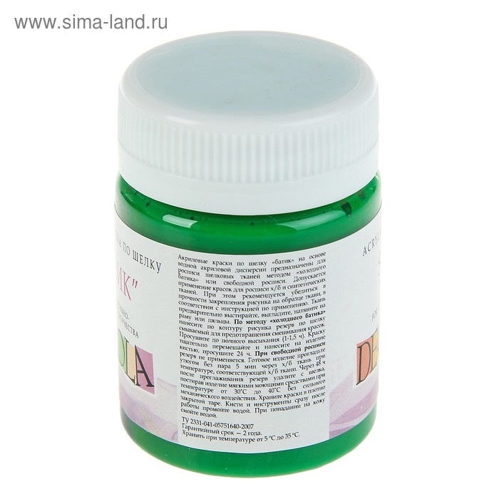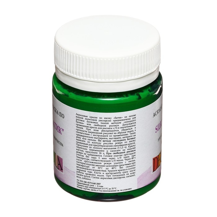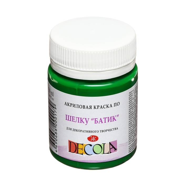 Краска по шелку "Батик", банка 50 мл, ЗХК Decola, Зеленая средняя 4428722 (акриловая на водной основе)