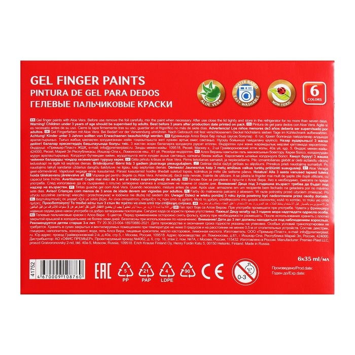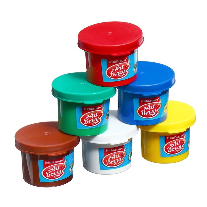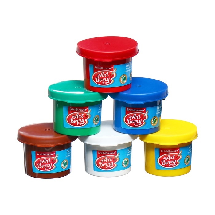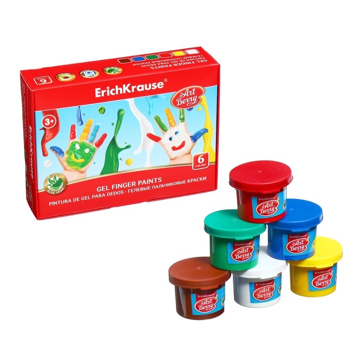 Краски пальчиковые, набор 6 цветов по 35 мл, ErichKrause ArtBerry, гелевые, с Алоэ Вера, картонная упаковка