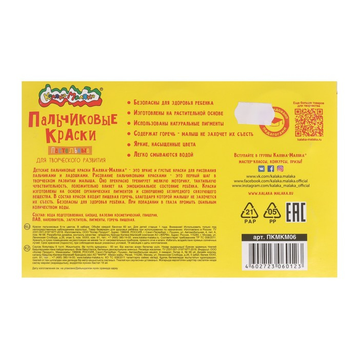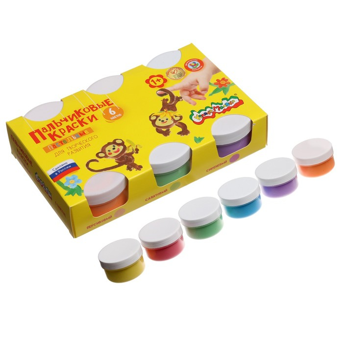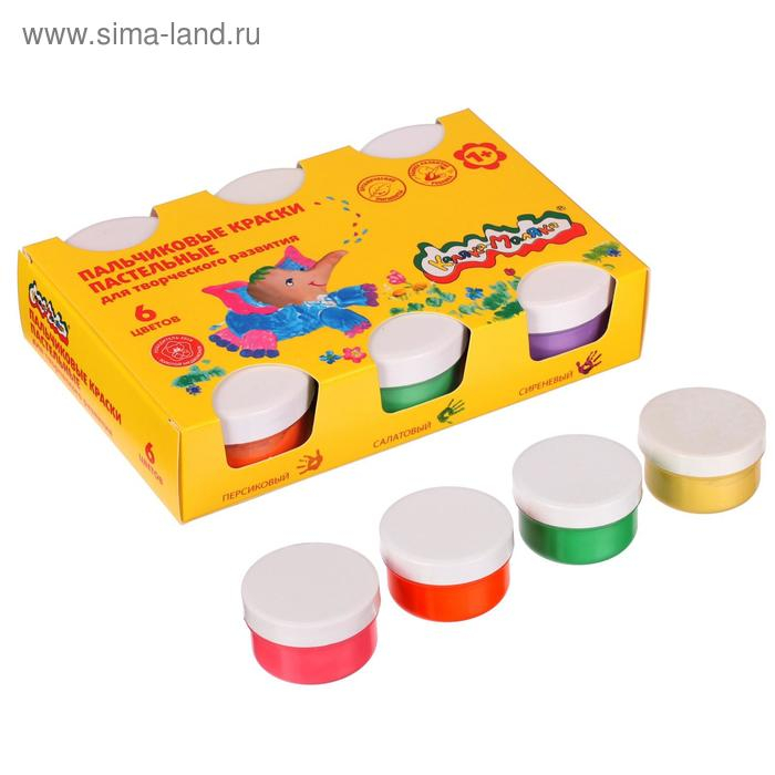 Краски пальчиковые пастельные, набор 6 цветов х 60 мл, "Каляка-Маляка", для малышей