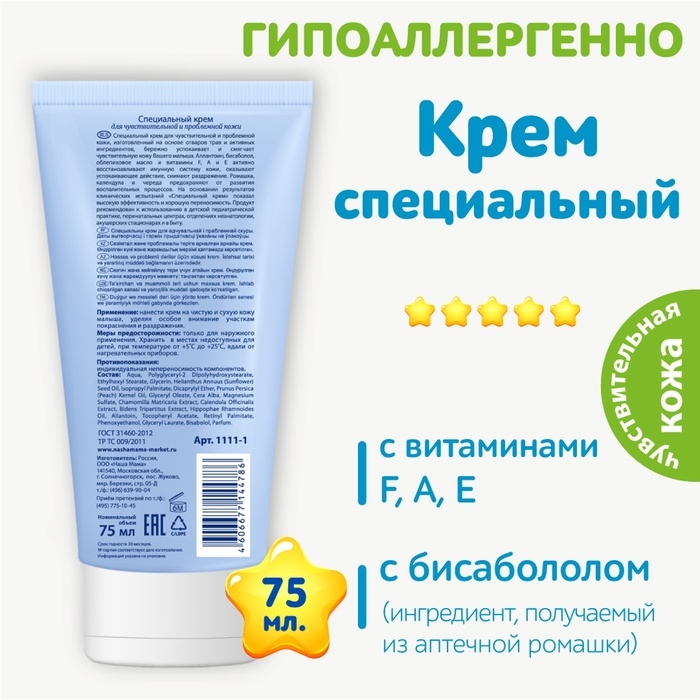 Крем детский для чувствительной кожи Наша Мама при раздражении и покраснении, 75 мл