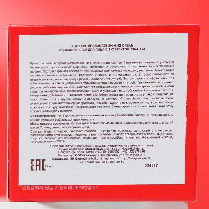Активные ингредиенты: Экстракт граната насыщает кожу витаминами, аминокислотами и минералами, обладает ярко выраженным лифтинг действием, стимулирует процесс регенерации и синтез собственного коллагена, ускоряет микроциркуляцию крови и заживление, выводит токсины, способствует осветлению пигментации различного происхождения и пост-акне, разглаживает существующие морщины и препятствует появлению новых.