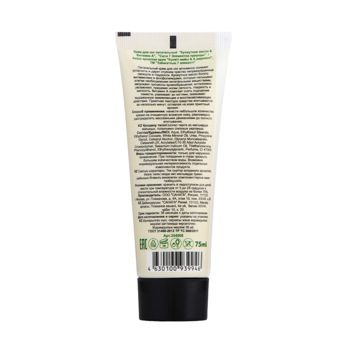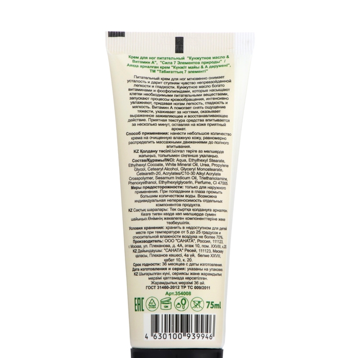 Крем для ног питательный "Сила 7 Элементов природы Кунжутное масло и Витамин А, 75 мл