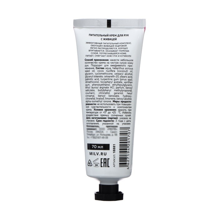 Крем для рук питательный с живицей MILV лимонный сорбет, 70 мл