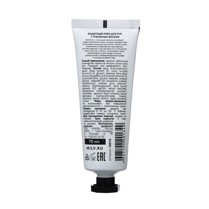 Крем для рук с пчелиным воском защитный MILV печенье, 70 мл
