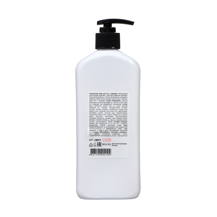 Крем для рук с живицей MILV питательный зефир, ваниль, лёгкие древесные ноты, 500 мл