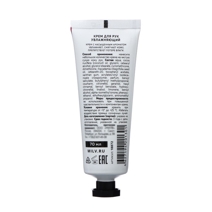 Крем для рук увлажняющий MILV персик, манго, 70 мл
