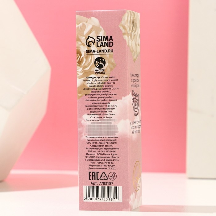 Крем для рук, 50 мл, аромат розы, ЧИСТОЕ СЧАСТЬЕ