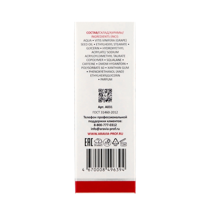 Меры предосторожности: не наносите на поврежденную кожу и избегайте попадания в глаза. При попадании в глаза тщательно промойте водой. Перед применением тестируйте на небольшом участке кожи