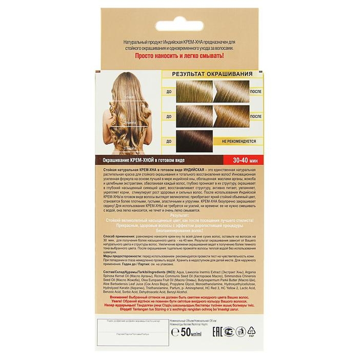 Крем-хна индийская натуральная в готовом виде, тон натуральный русый, 50 мл