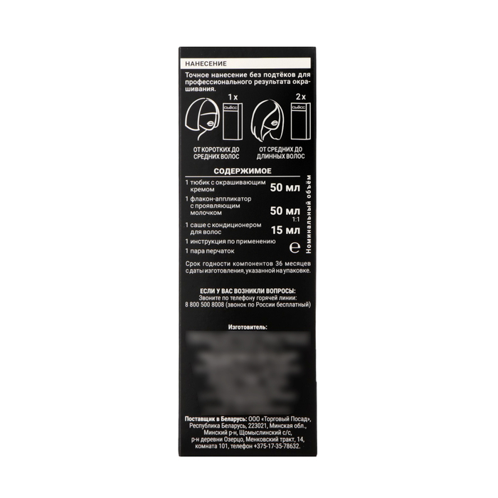 - Проявляющее молочко: Aqua (Water, Eau), Hydrogen Peroxide, Cetearyl Alcohol, PEG-40 Castor Oil, Etidronic Acid, Sodium Cetearyl Sulfate, 2,6-Dicarboxypyridine, Disodium Pyrophosphate, Potassium Hydroxide, Sodium Benzoate.