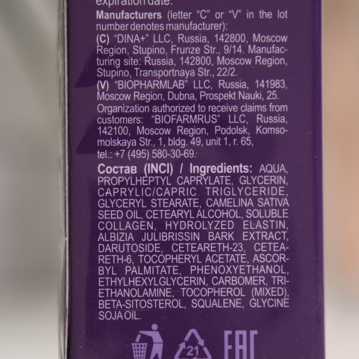 Омолаживающий крем для кожи вокруг глаз КОЛЛАГЕН специально создан для антивозрастного ухода за тонкой кожей век. Коллаген-эластиновый комплекс разглаживает морщины, восстанавливает эластичность нежной кожи вокруг глаз и увлажняет ее. Экстракты Персидского дерева и Сигезбекии восточной, дополняя работу комплекса, подтягивают складку верхнего века, разглаживают гусиные лапки, улучшают микроциркуляцию кожи и способствуют уменьшению отечности. Витамин Е и масло рыжика защищают кожу от действия свободных радикалов, смягчают ее, стимулируют клеточный обмен и повышают тонус кожи. Результат - молодой, распахнутый взгляд, сияющий молодостью! Способ применения: легкими прикосновениями нанести небольшое количество крема на кожу вокруг глаз, затем мягкими постукивающими движениями подушечек пальцев помочь крему полностью впитаться. Рекомендуется использовать утром и вечером.