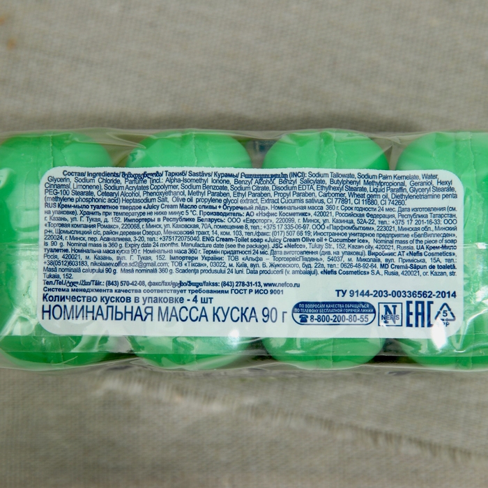 Крем-мыло твердое Juicy Ceam Масло Оливы и Огуречный лёд, 4 х 90 гр