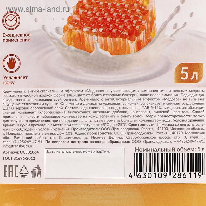 Крем-мыло UNICARE «Медовое», антибактериальное, ПЭТ, жидкое 5 л