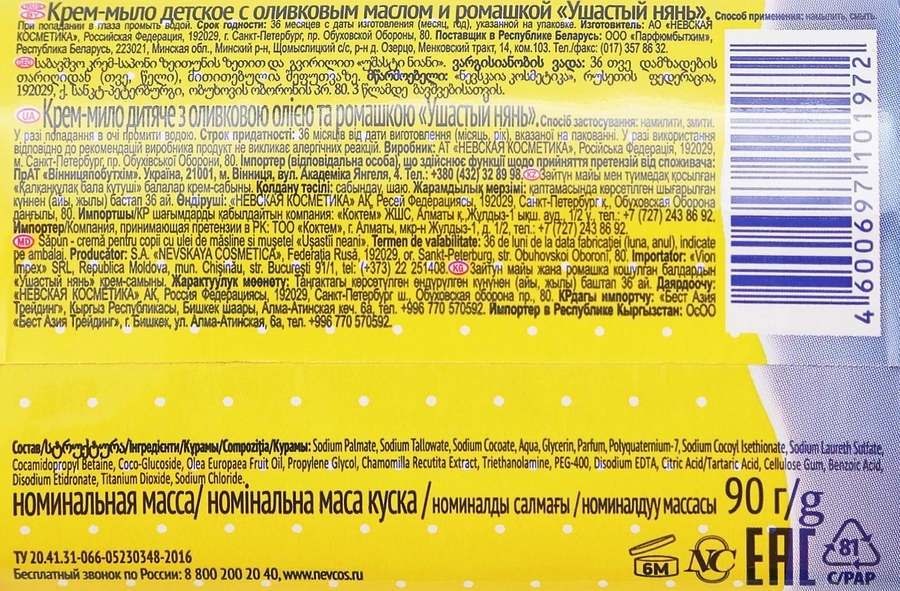 Крем-мыло УШАСТЫЙ НЯНЬ с оливковым маслом и экстрактом ромашки