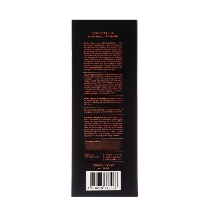 Крем-мыло жидкое в стеклянном флаконе by Stepykinʾs миндаль, 230 мл