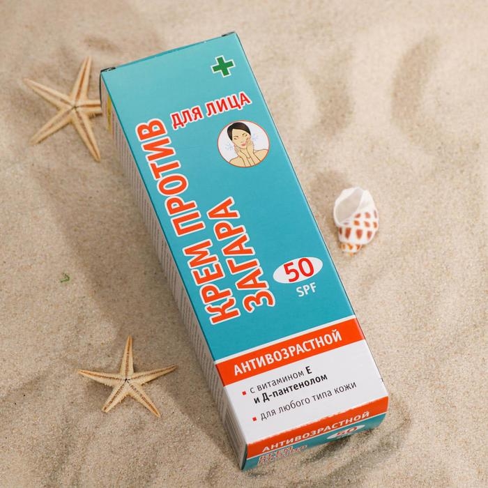 Крем против загара для лица "ПРОТИВ ЗАГАРА" SPF-50. Антивозрастной. Для зрелой кожи 60 мл. Крем против загара для лица SPF-50. Антивозрастной. Для зрелой кожи туба 60 мл. Крем предназначен для максимальной защиты зрелой кожи от солнечных лучей. В состав крема входят активные ингредиенты, способствующие выравниванию тона кожи и разглаживанию морщин. Регулярное применение крема предупредит преждевременное старение Вашей кожи. В состав крема включен природный антиоксидант, а также увлажняющий комплекс. Крем обладает водостойким свойством.Содержит мощный комплекс UVA- и UVB-лучей, обеспечивающий максимальную защиту кожи от воздействия прямых солнечных лучей и блокирующий процесс выработки меланина в коже.Применение: Равномерно нанесите крем на кожу , перед выходом на солнце. Регулярно обновляйте защитный слой после купания и при длительном пребывании на солнце.