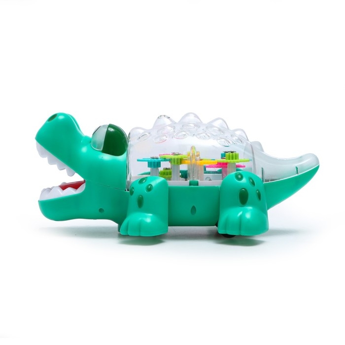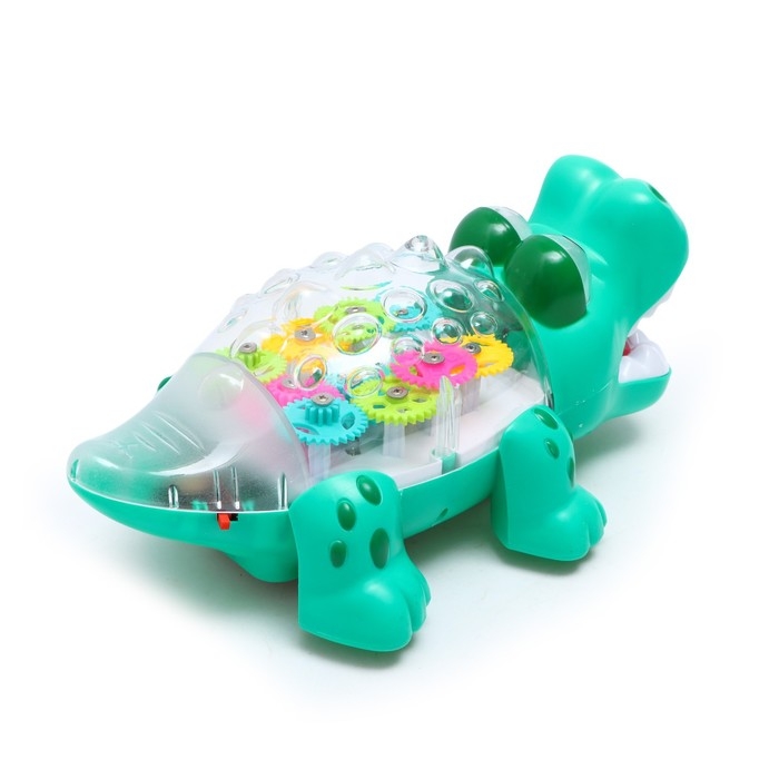 Крокодил «Шестерёнки», свет и звук, работает от батареек, цвет зелёный