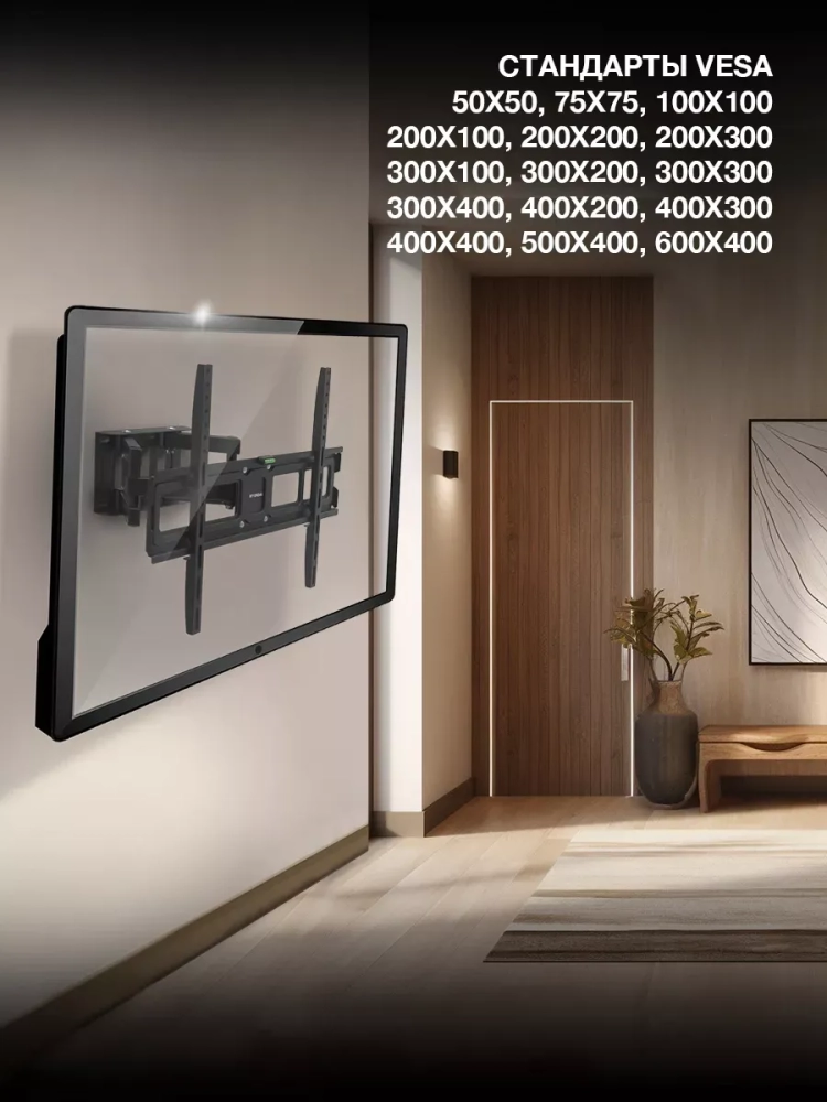 Основной особенностью кронштейна Hyundai GL-N5 являются раздельные планки крепления к корпусу телевизора, которые обеспечивают совместимость во всеми с размерами стандарта VESA от 50х50 - 600х400, а значит и с большинством современных моделей телевизоров и мониторов.