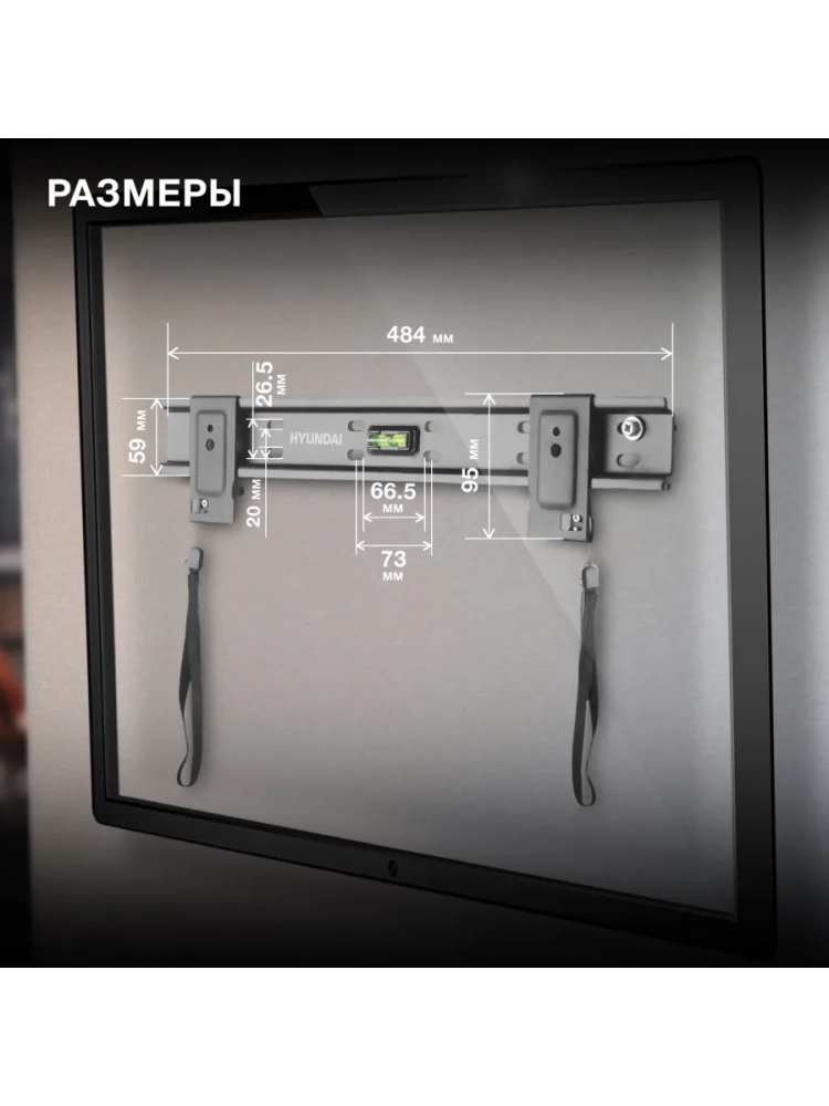 Кронштейн для телевизора Hyundai SL-X1 черный, рекомендуемая диагональ 32"-55", максимальная нагрузка 50кг, настенный, фиксированный, (HMS55XF050BK24) Поддержка крепления VESA: 200x200, 300x200, 300x300, 300x400, 400x200, 400x300, 400x400