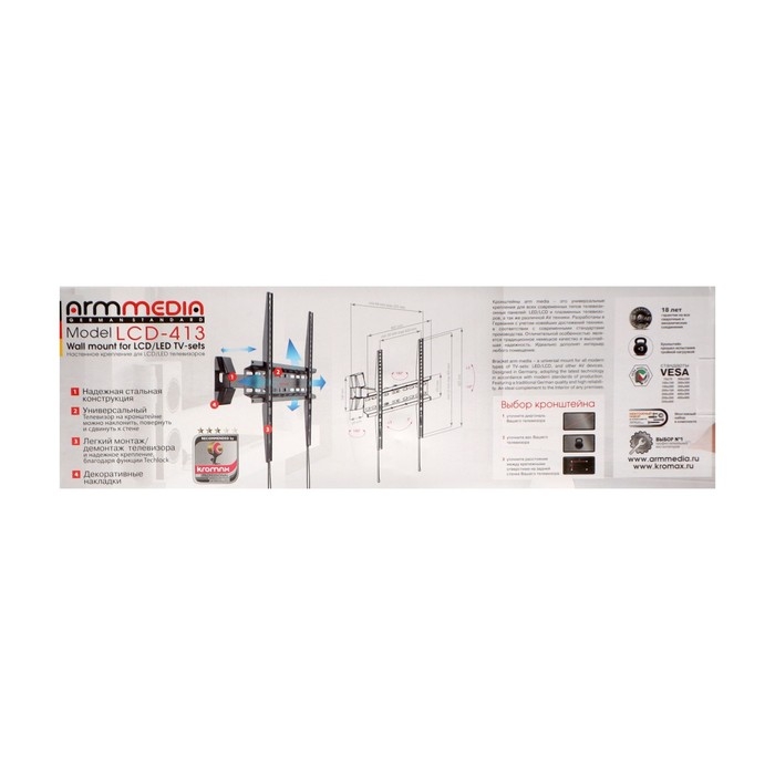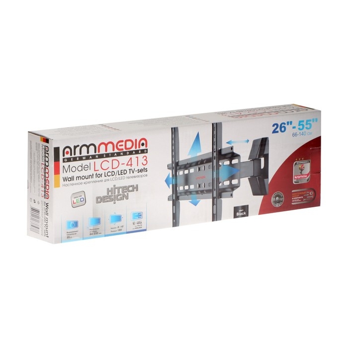 Кронштейн Arm media LCD-413, для ТВ, наклонно-поворотный, 26-55",до 35 кг, 66-140 мм, черный