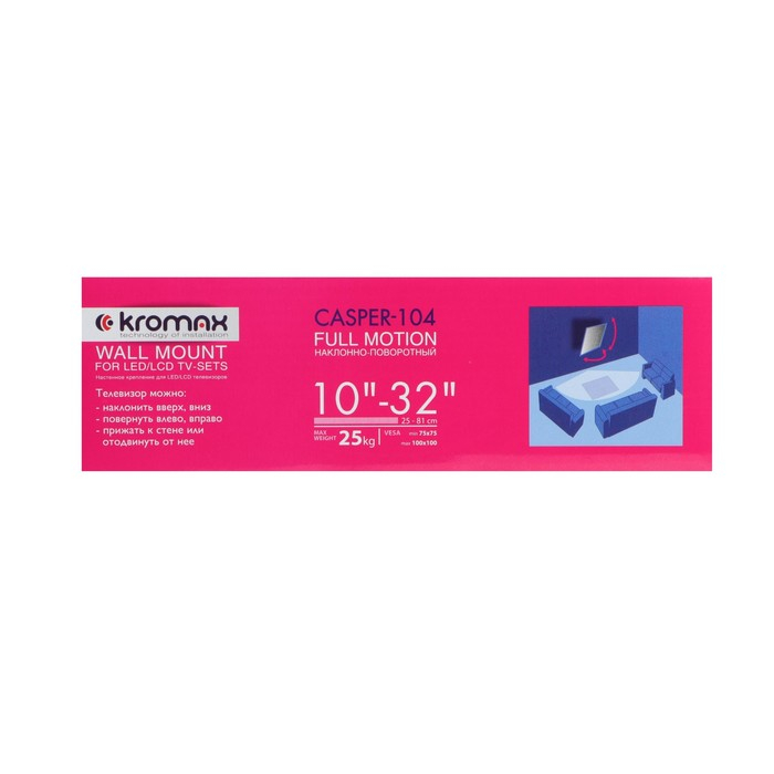 Кронштейн Kromax CASPER-104, для ТВ, наклонно-поворотный, 10-32", 57-410 мм от стены, черный