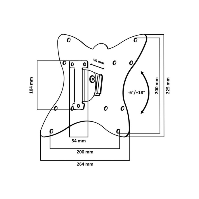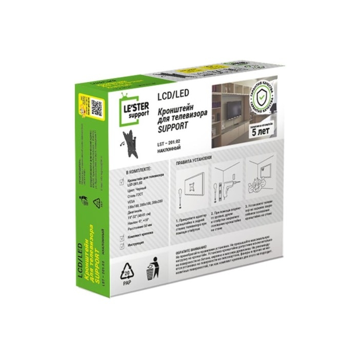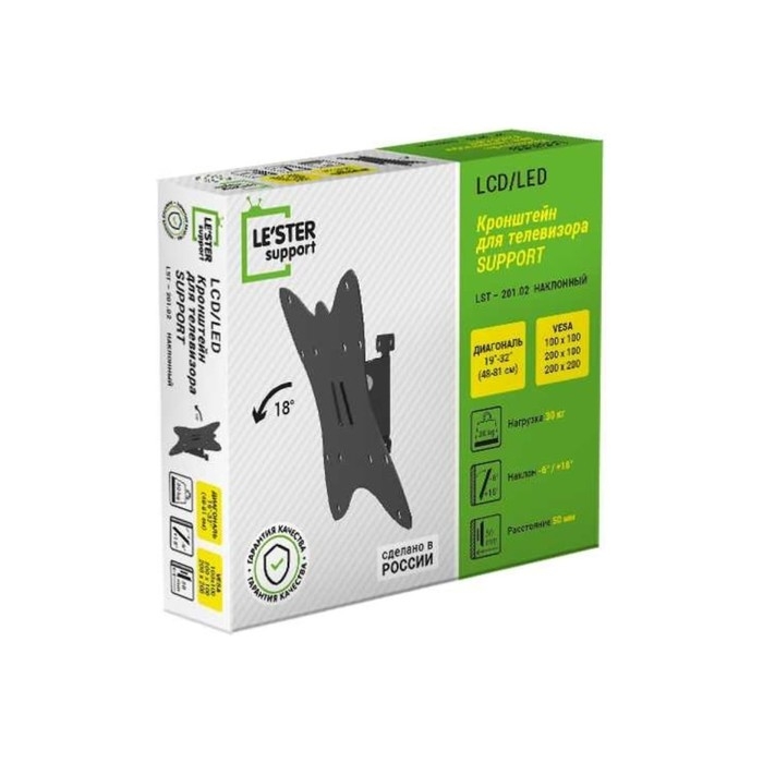 Кронштейн LE'STER LST-201.02, для ТВ, наклонный, 10"-55", 50 мм от стены, черный