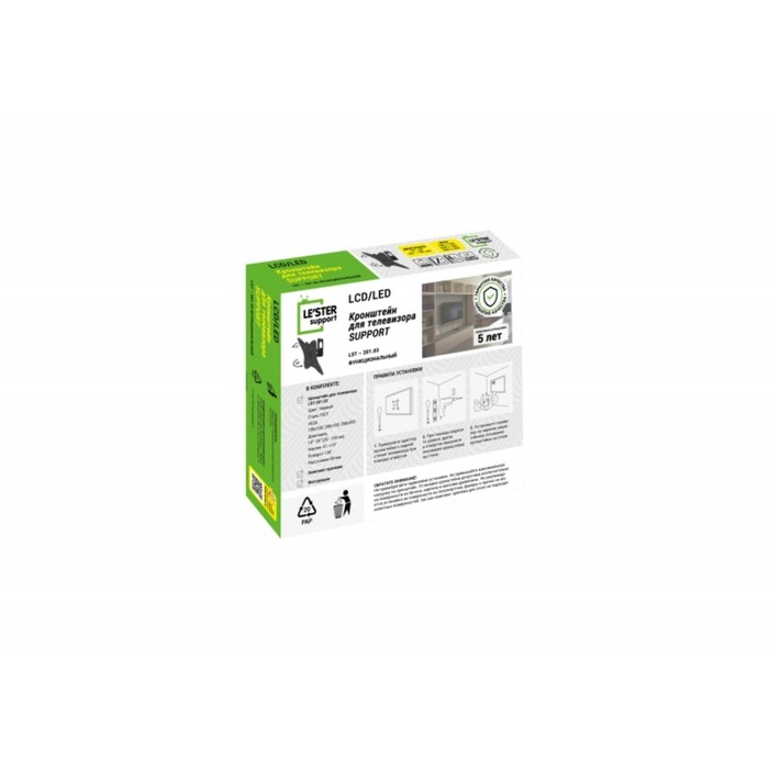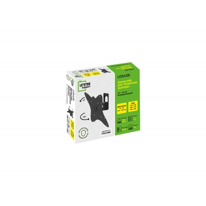 Кронштейн LE'STER LST-201.03, для ТВ, наклонно-поворотный, 10-55",50-90 мм от стены,черный